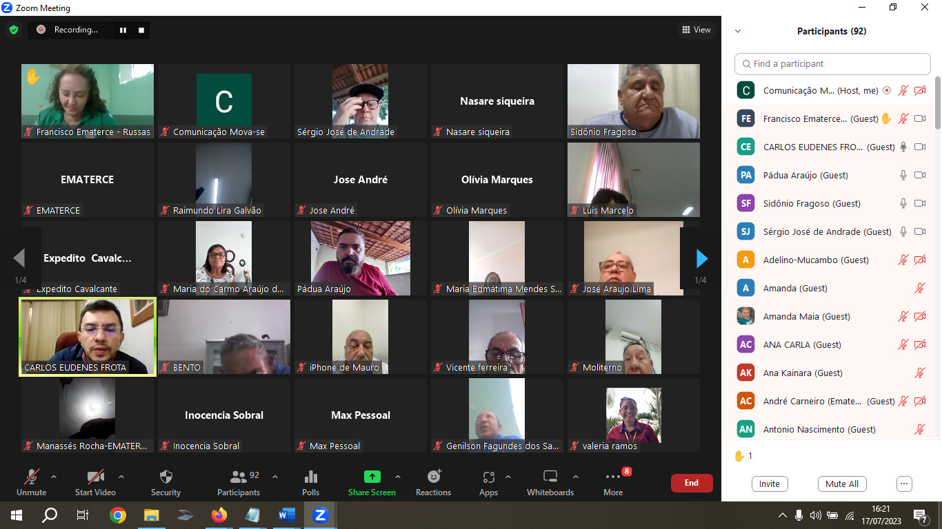O Sindicato MOVA-SE e Associação Assema, realizaram na tarde desta segunda-feira, 17/07, uma reunião virtual com os empregados públicos da Ematerce, que na ocasião, pautaram sobre o impasse nas negociações do ACT 2023.