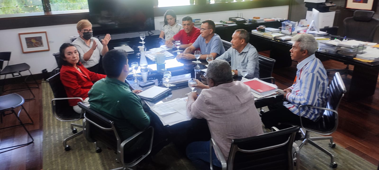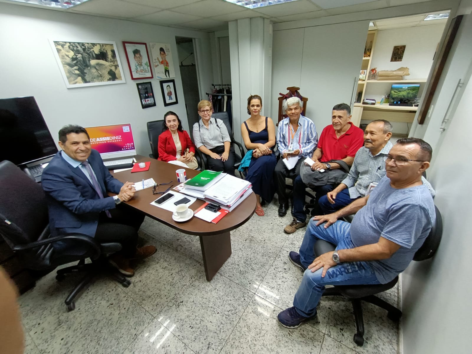 Uma comissão de dirigentes sindicais do Fuaspec e do Sindicato Mova-se estiveram presentes na manhã desta quinta-feira, 13/07, na casa Legislativa para compor uma maratona de visitas aos gabinetes dos deputados estaduais com objetivo de buscar apoio político pela retirada do PL – Projeto de Lei 9093, que retira o direito dos servidores de participar do processo de indicação do Presidente da Cearaprev. A Fundação de Previdência Social do Estado do Ceará – Cearáprev é o órgão que faz a gestão do regime próprio de previdência social dos servidores públicos.