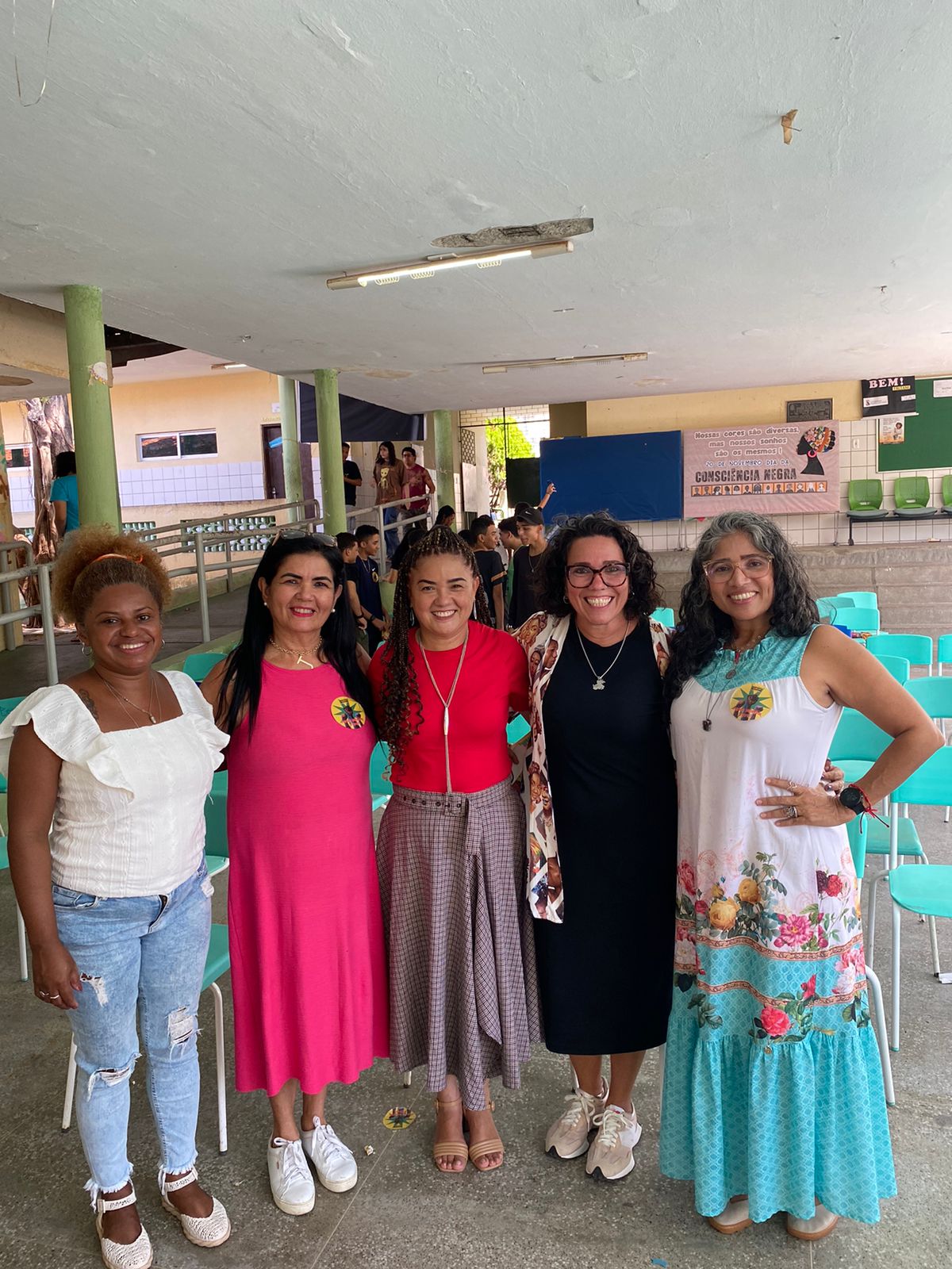 A atividade teve como objetivo promover o diálogo e conscientizar a comunidade escolar sobre questões raciais e de justiça social, alinhando-se aos princípios da educação inclusiva e cidadã. Também participaram da roda de conversa Virgínia Virlagran, diretora da escola, e as coordenadoras Sâmia e Elisonete, que contribuíram para enriquecer as discussões com suas perspectivas e experiências.