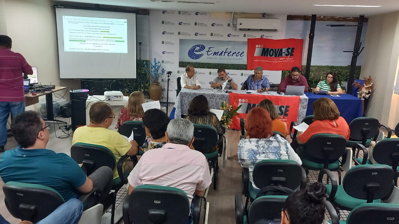 A diretoria do Sindicato dos Trabalhadores no Serviço Público Estadual do Ceará/MOVA-SE, realizou nesta terça-feira, 31 de julho, uma assembleia geral, com os empregados públicos da Ematerce, para analisar e deliberar sobre a proposta encaminhada pela Ematerce referente às negociações do ACT – Acordo Coletivo de Trabalho 2024. A assembleia que teve participação presencial e remoto, a categoria aprovou por grande maioria o ACT 2024.
