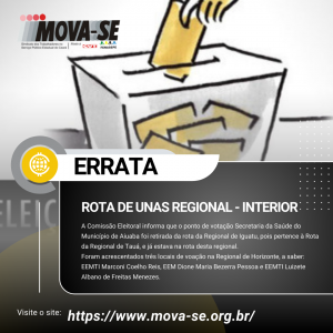 A Comissão Eleitoral informa que o ponto de votação Secretaria da Saúde do Município de Aiuaba foi retirada da rota da Regional de Iguatu, pois pertence à Rota da Regional de Tauá, e já estava na rota desta regional.