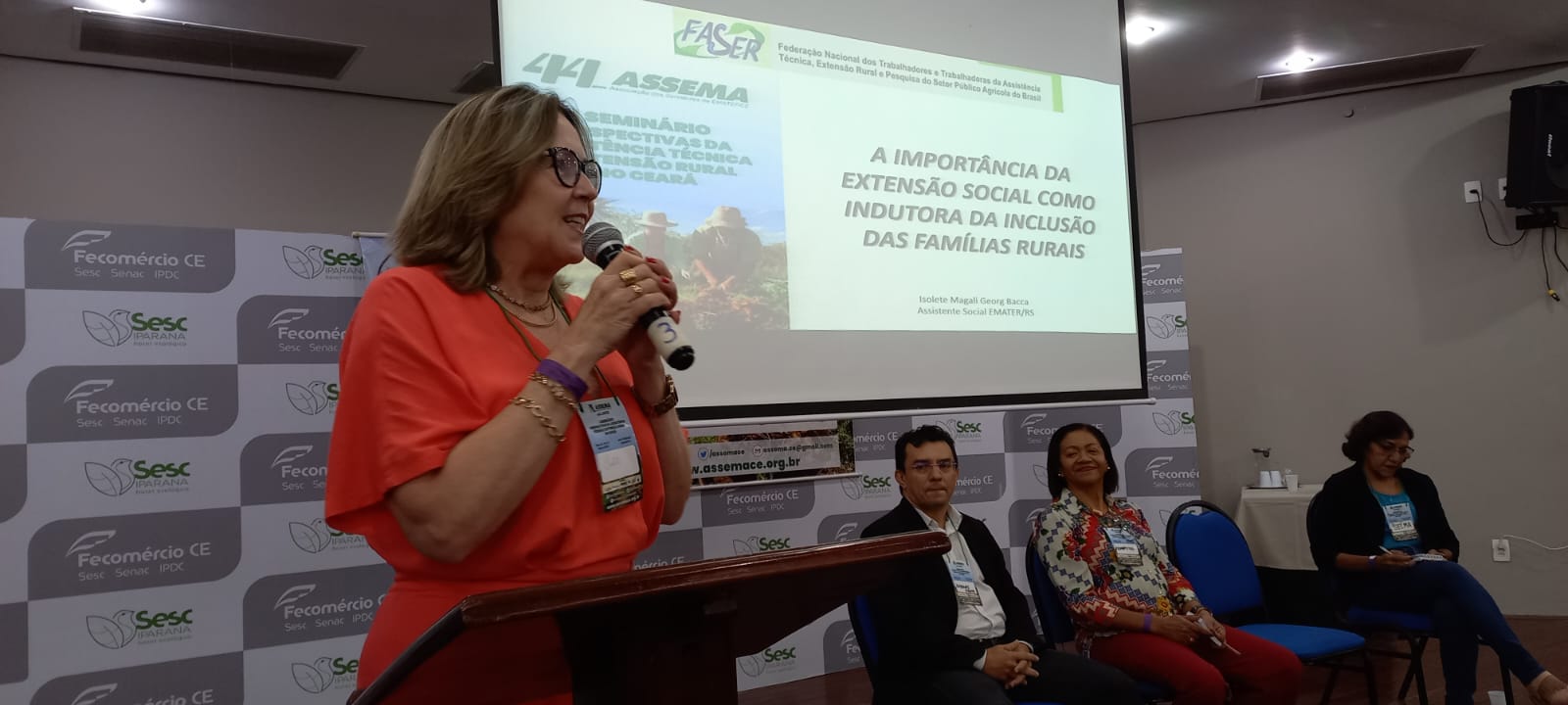 Na ocasião, Isolete Bacca/ EMATERCE – RS/ASCAR palestrante destacou o extensionista social, como agente de transformação no campo e nas comunidades.  A assistência técnica e extensão rural é uma importante ferramenta para melhorar a produtividade e a qualidade de vida dos agricultores familiares. No entanto, ainda há muitos desafios a serem superados para a ampliação do acesso a esses serviços em áreas rurais do Ceará.