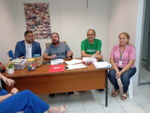 O coordenador-geral do Sindicato Mova-se, Pádua Araújo, e o advogado da entidade, Dr. Roger Cid, estiveram reunidos nessa quarta-feira (5) na sede da Associação dos Trabalhadores da Ceasa para tratar das negociações do Acordo Coletivo de Trabalho (ACT) 2025.