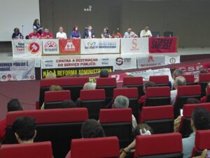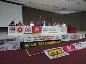 O encontro reuniu representantes de entidades sindicais, parlamentares e movimentos sociais para discutir os impactos da proposta de Reforma Administrativa sobre o serviço público e os direitos dos servidores e servidoras. Durante a audiência, foram apresentadas análises críticas e posicionamentos em defesa de um Estado forte, com serviços públicos de qualidade e valorização dos trabalhadores e trabalhadoras.