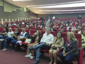 Representando as entidades na bancada da mesa, esteve Hernesto Luz, diretor da CUT e dirigente sindical do MOVA-SE, reforçando a presença e o posicionamento do movimento sindical no debate.