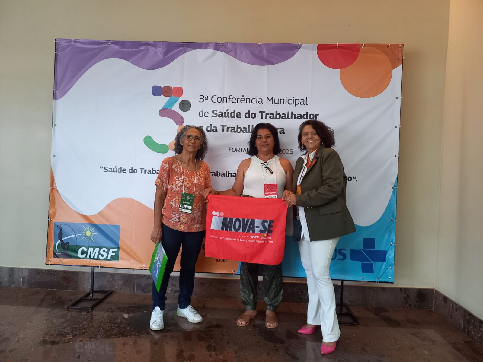 As diretoras Mary Anne, Eliane e Francicleide representaram o Sindicato MOVA-SE, contribuindo com debates e propostas para a melhoria da saúde dos trabalhadores. A conferência reuniu especialistas, representantes sindicais e gestores públicos para discutir políticas de prevenção de doenças e acidentes de trabalho.