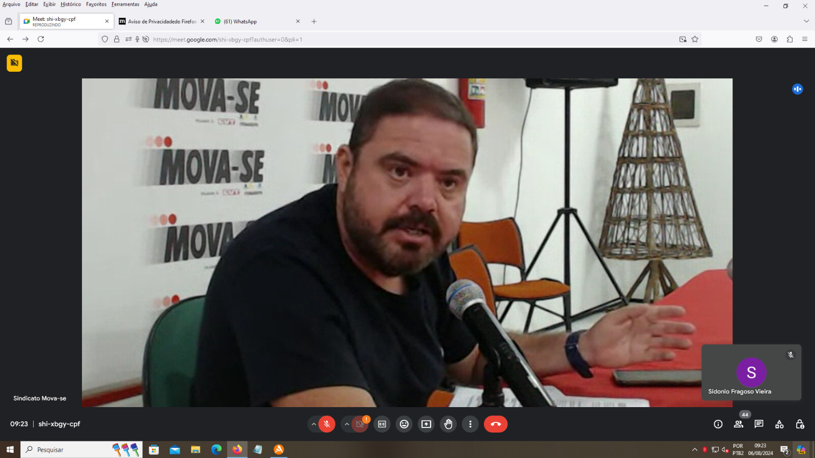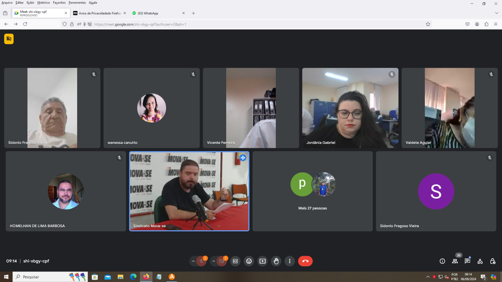 Registro da Assembleia virtual realizada na manhã desta terça-feira, 06/08, pelo sindicato MOVA-SE e presidida pelo coordenador do sindicato, Prof. Pádua Araújo, em pauta, houve os esclarecimentos sobre algumas pendências das cláusulas do Acordo Coletivo de Trabalho – ACT 2024 da Ematerce.