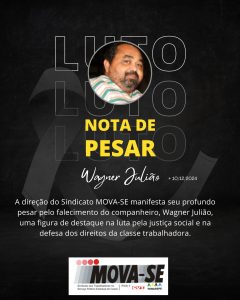 A direção do Sindicato MOVA-SE manifesta seu profundo pesar pelo falecimento do companheiro, Wagner Julião, uma figura de destaque na luta pela justiça social e na defesa dos direitos da classe trabalhadora.